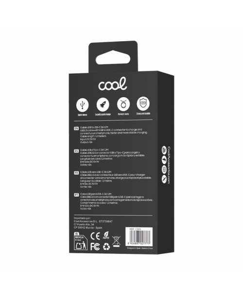 Cabo USB universal COOL compatível TYPE-C (1,2 metros) Preto 2,4 Amp
