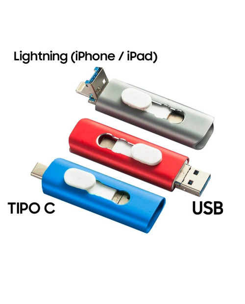 Pen Drive USB x64 GB COOL (3 em 1) Lightning / Type-C / USB Azul