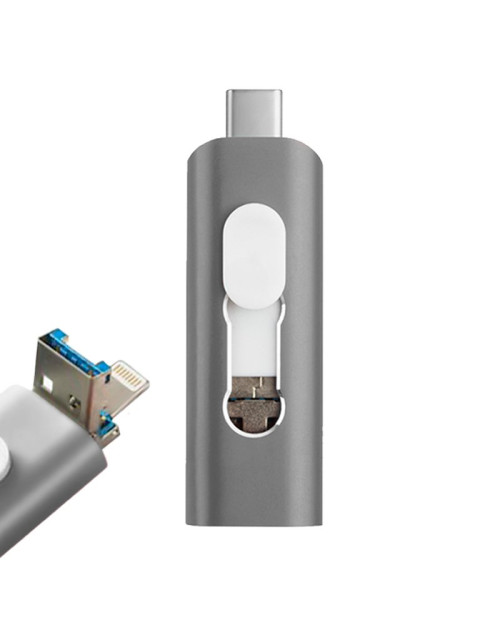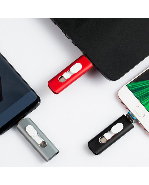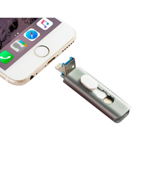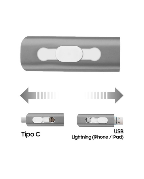 Pen Drive Cool 3 em 1, multi-conexão: Lightning (iPhone / iPad), TYPE-C e USB