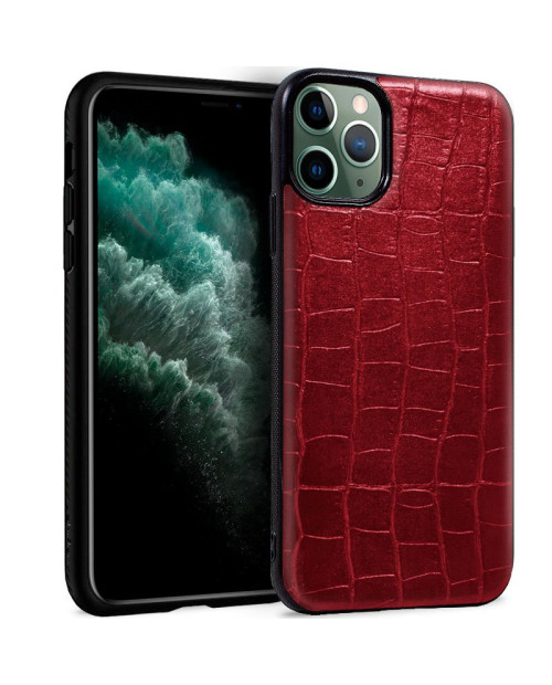 Capa iPhone 11 Pro Max Couro Crocodilo Vermelho
