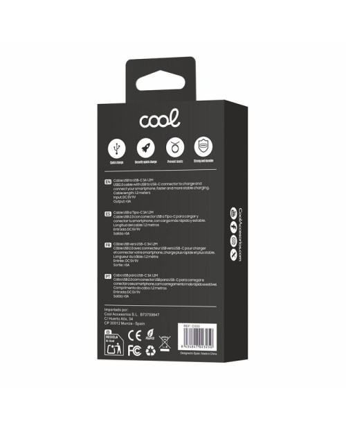Cabo USB universal COOL compatível TYPE-C (1,2 metros) Branco 2,4 Amp